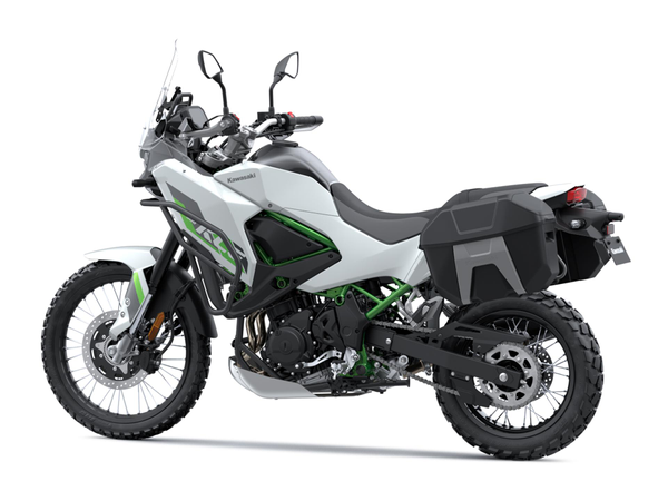 La capacidad de montar simultáneamente dos maletas laterales y un top case (disponibles como accesorios originales Kawasaki) amplía notablemente las opciones para viajes. Esto es posible gracias a un subchasis trasero reforzado, capaz de soportar cargas elevadas manteniendo estabilidad y aplomo a alta velocidad.