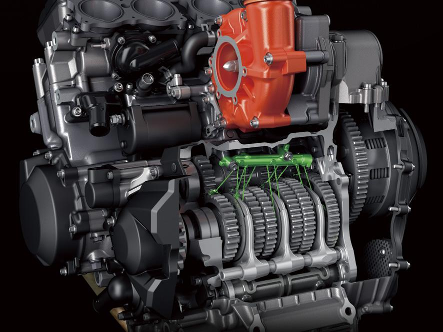 Basándose en el know-how y la tecnología del Grupo KHI, el motor sobrealimentado de Kawasaki ofrece una potencia muy alta manteniendo un diseño compacto; la clave es su supercargador específico para moto, desarrollado internamente con tecnología de las divisiones de Turbinas de Gas, Aeroespacial y Tecnología Corporativa; al diseñarlo a medida, se logró una eficiencia altísima en un rango amplísimo de condiciones, imposible de conseguir adaptando un supercargador automotriz; esa eficiencia minimiza el calor generado al comprimir el aire y se mantiene en un amplio rango de presiones y caudales, lo que se traduce en una aceleración contundente; además, al generar tan poco calor, no necesita intercooler, reduciendo peso y permitiendo un motor más compacto."