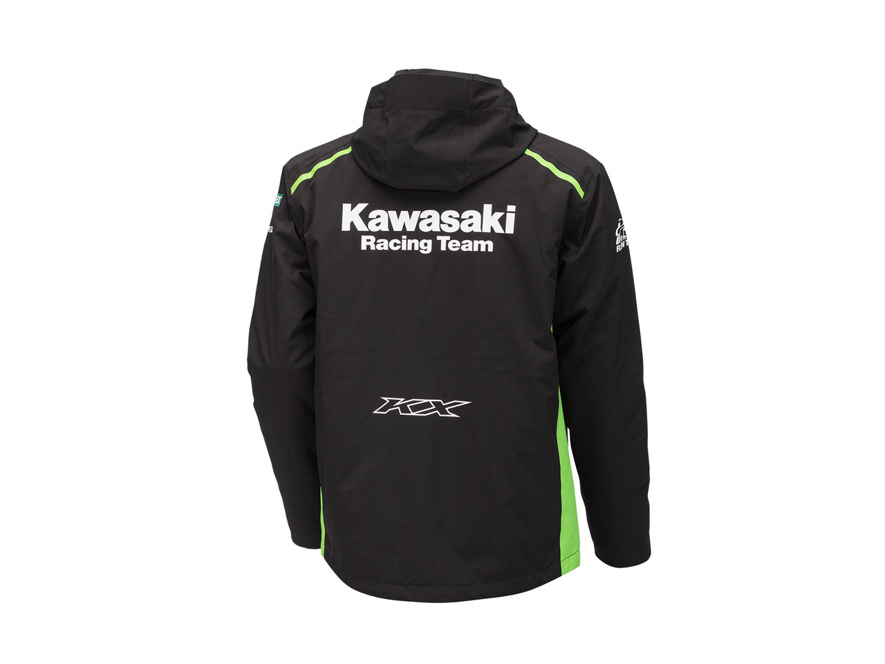 Kawasaki MXGP team replica two-in-one jacket with detachable inner thermos-liner, zipped inner and outer pockets and internal sleeve cuff. Seams are taped to keep the rain at bay. Unzip the liner to convert the jacket for mid-season use. Also available in an extra small size.