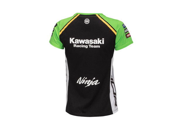 Short sleeved rounded neck female t-shirt in Kawasaki 2024 WSBK team-colours.