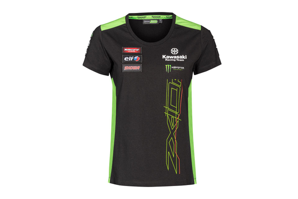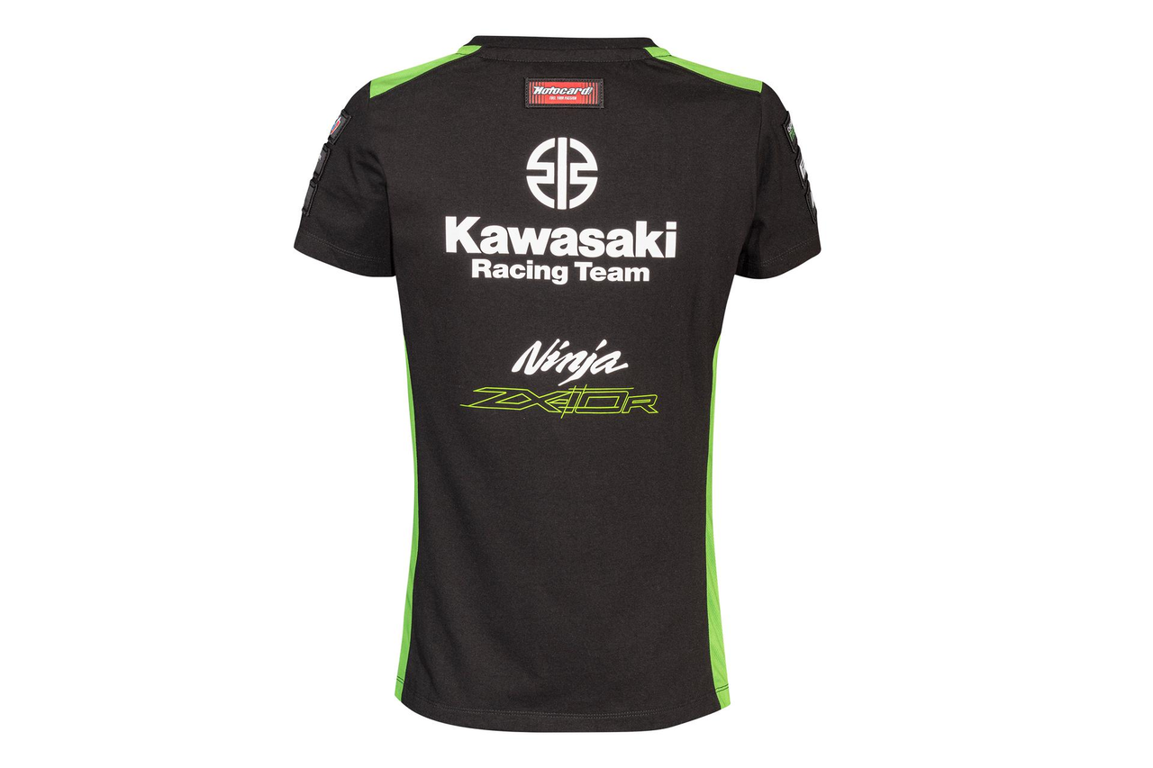 Short sleeved rounded neck t-shirt in Kawasaki's WSBK 2023 team-colours and graphics.