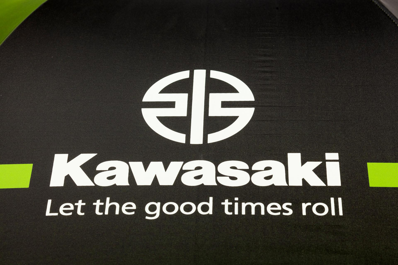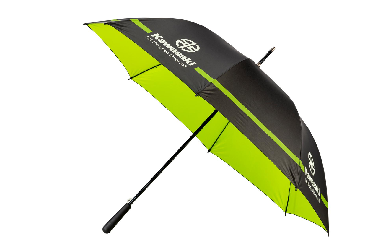 This large Kawasaki branded black umbrella of 125cm in diameter has a green inside.