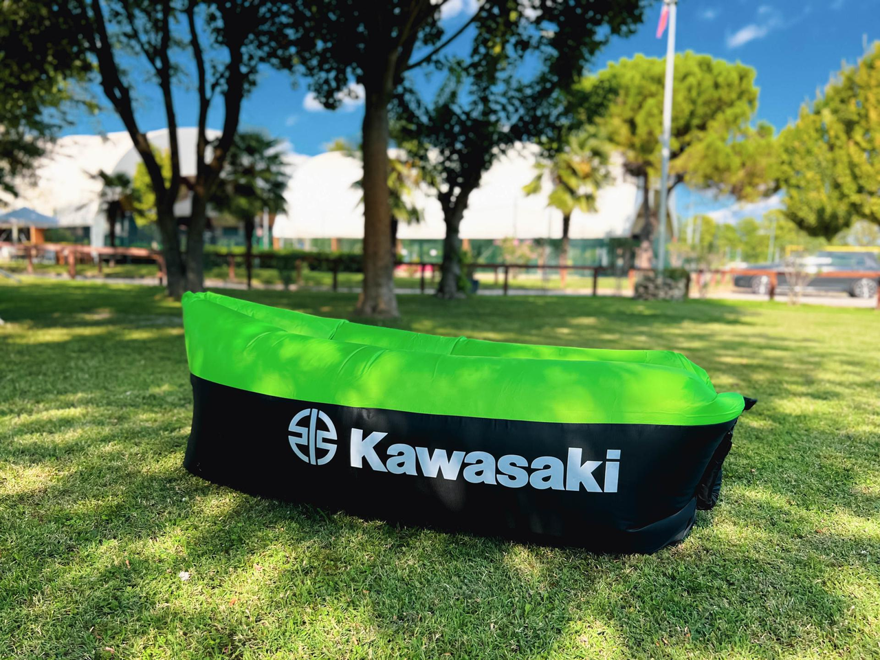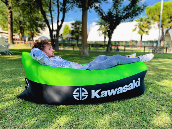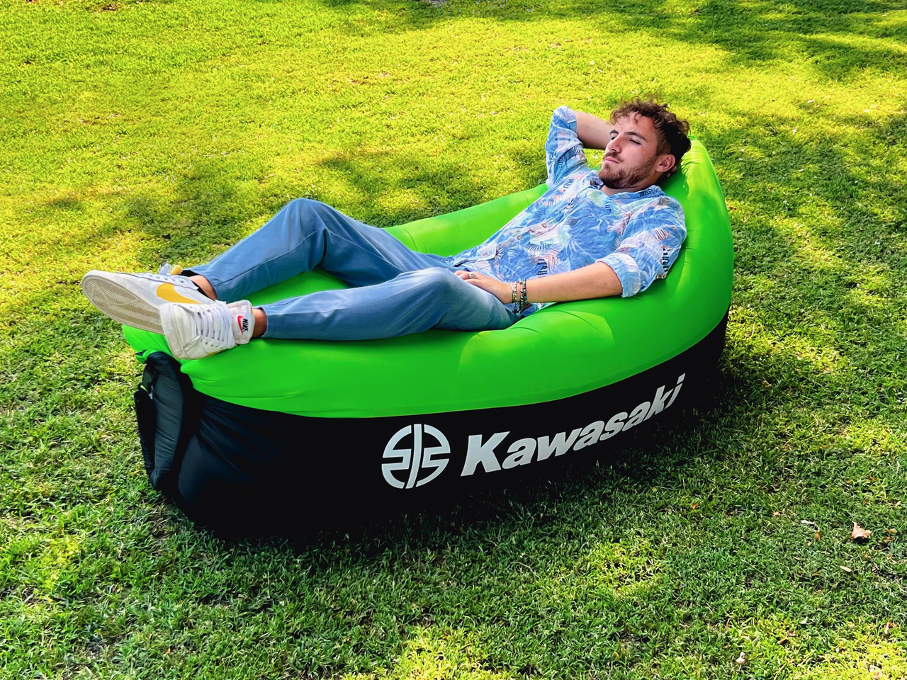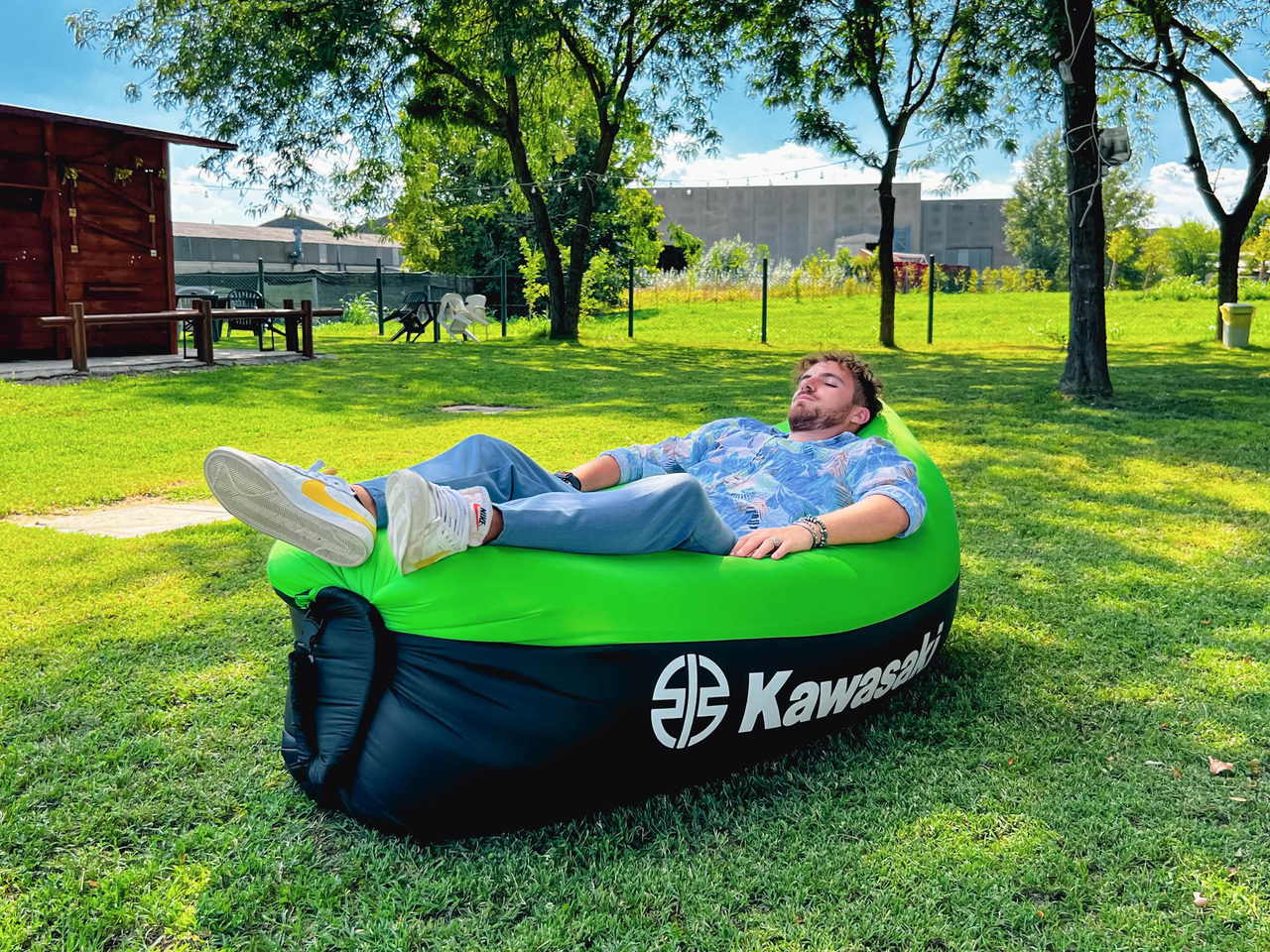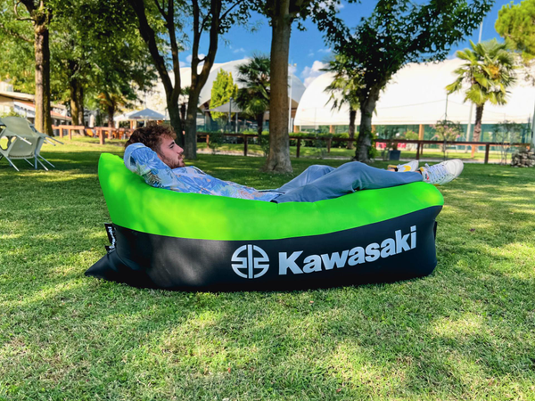 Compact inflatable lounger with handy carry bag. Made from rip-stop fabric and inflated with natural airflow.