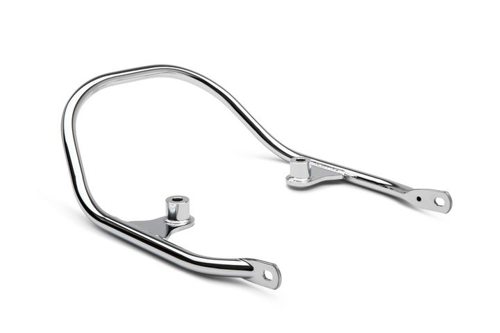Asidero trasero de estilo clásico para mejorar el confort del pasajero. Fabricado en acero cromado. Incluye toda la tornillería necesaria. No compatible con el juego de asideros laterales.