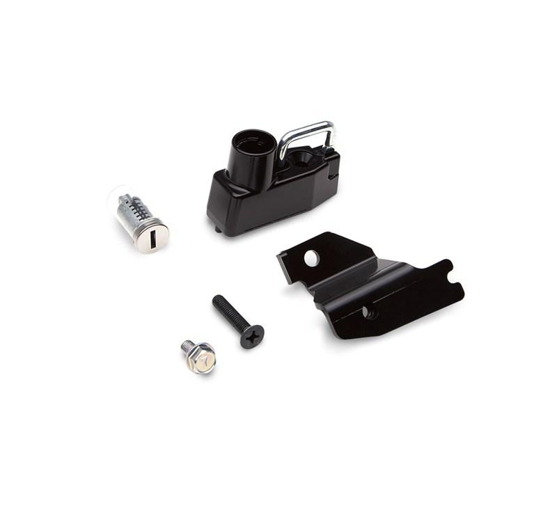 Sistema para asegurar el casco de forma cómoda cuando la moto está estacionada. Cerradura montada en el chasis que utiliza el sistema Kawasaki One Key, permitiendo el uso de la llave de contacto. Construcción en acero. Incluye todos los soportes y tornillería necesarios. Instalación requerida en concesionario.